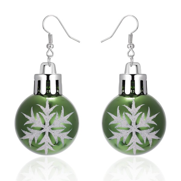 ONLYJUMP Colorful Christmas Earrings for Women Christmas Lightweight Snowflake Star Light Bulb Earrings Festive Cute Red Green Big Ball Earrings Christmas Jewelry (Green Snowflake)