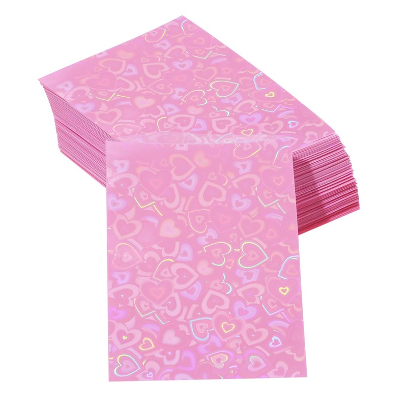 ONLYKXY 100pcs Soft Clear Plastic Heart Glitter Bag Storage Pouch Laser Sleeve Cover Pocket Holder Holographic Photo Protector Top Loader for 3in Trading Card Coin Jewelry (Hot Pink)