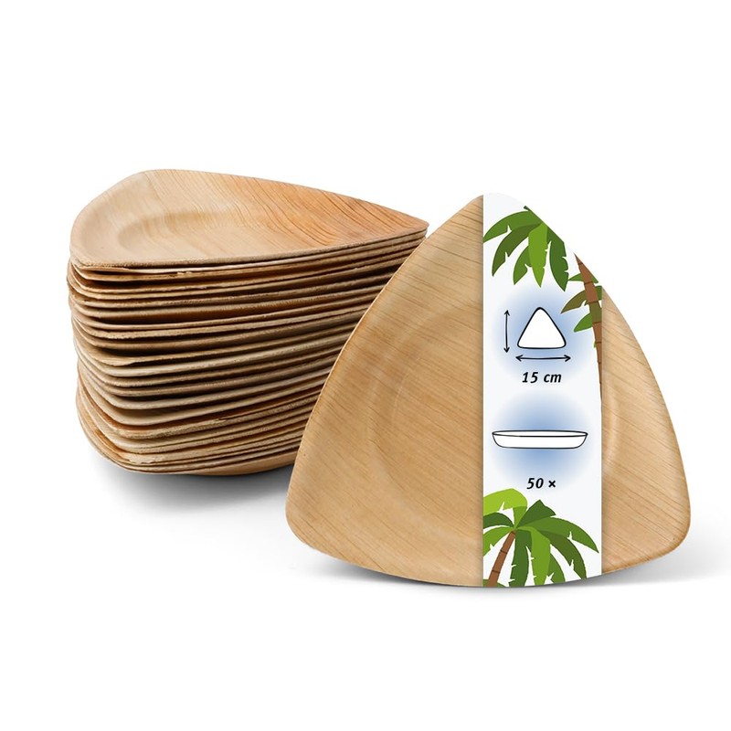 - Can be combined with palm leaf bowl, salad bowl, soup plate etc. The triangular party plates are the finishing touch for the perfect menu. With our range you are well equipped