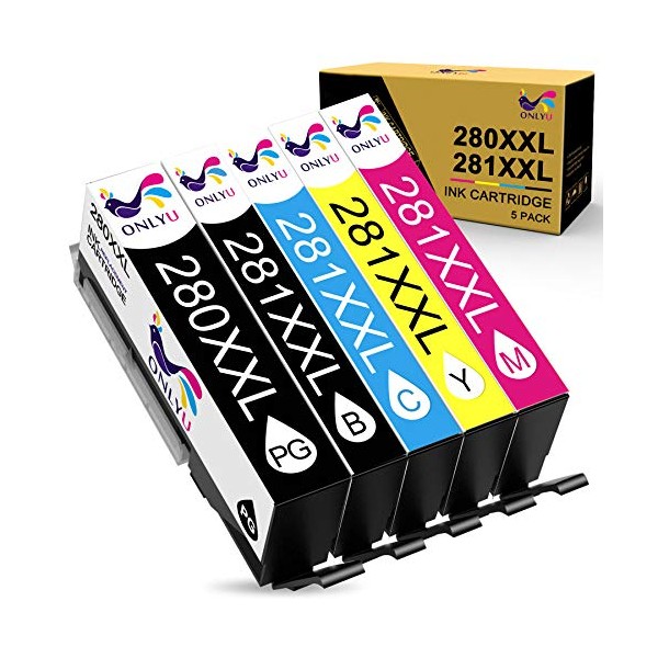 ONLYU Compatible Ink Cartridge Replacement for Canon 280 281 PGI-280XXL CLI-281XXL PGI 280 XXL CLI 281 XXL PIXMA TR7520 TR8520 TS6120 TS6220 TS6320 TS8220 TS8320 Printer (5 Packs)
