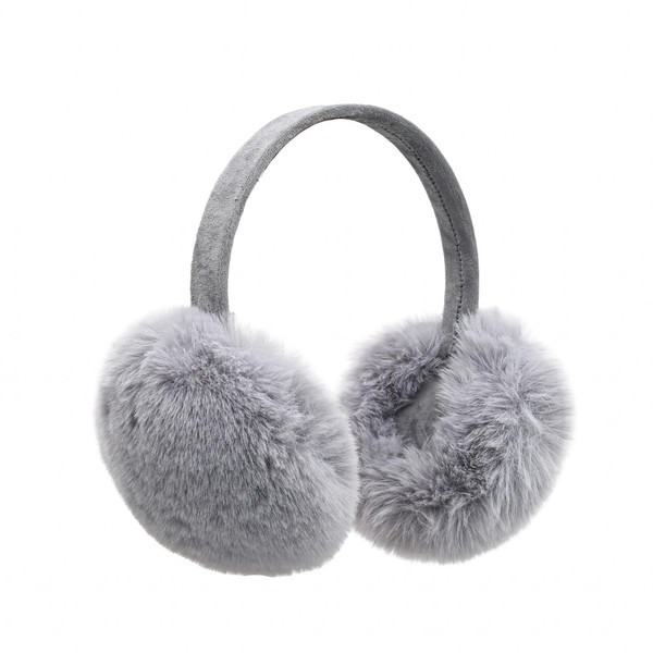 Onmygogo Plush Faux Fur Earmuff for Winter, Soft Warm and Foldable (Pure grey)