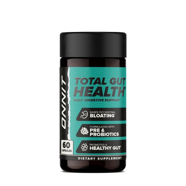 ONNIT Total Gut Health Daily Digestive Support, Complete Digestion Supplement for Women and Men with 7 Strains of Probiotics, Prebiotics, Enzymes and Betaine HCL, 60 Count