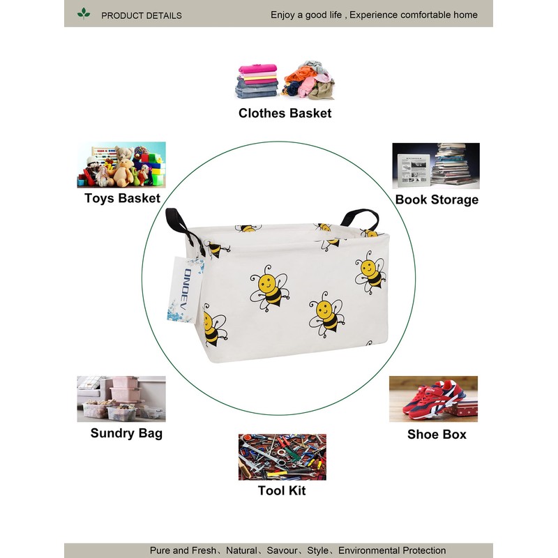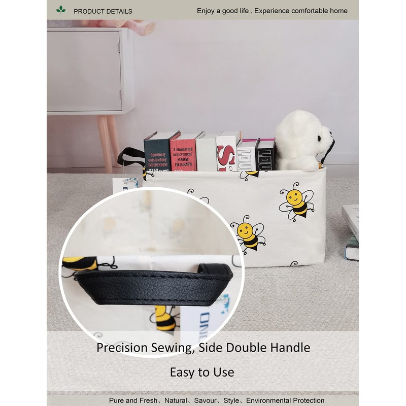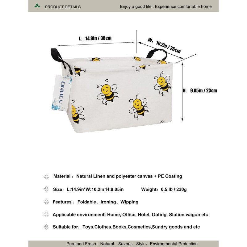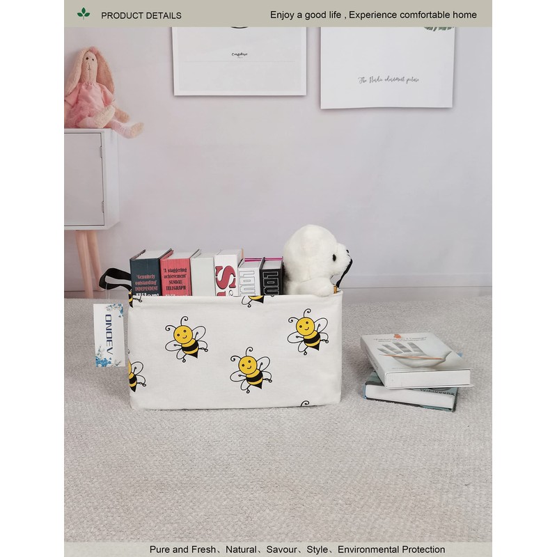 ONOEV Rectangular Folding Laundry Basket, waterproof Canvas Basket,gift basket,Suitable for children's room,Office,Clothes,Toys Storage(Bee)