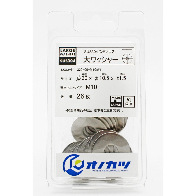 Onokatsu Genuine Domestic SUS304 Stainless Steel Large Washer for M10 [Outer Diameter 1.2 inch (30 mm), Thickness 0.06 inch (1.5 mm)] 26 Pieces 320-00-M10x#1