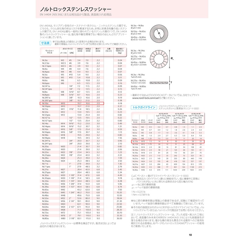 Onokatsu Nord-Lock Washer, Stainless Steel, For NL10SS M10, Pack of 10