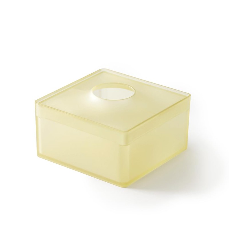 ONOM Easy To Remove Tissue Case Holder, Half Size, Made in Japan, Easy to Refill, Stylish, Cute, Tissue Holder, Yellow, Translucent, Unbreakable, Simple, Tissue Standing, Easy Removal, Square,