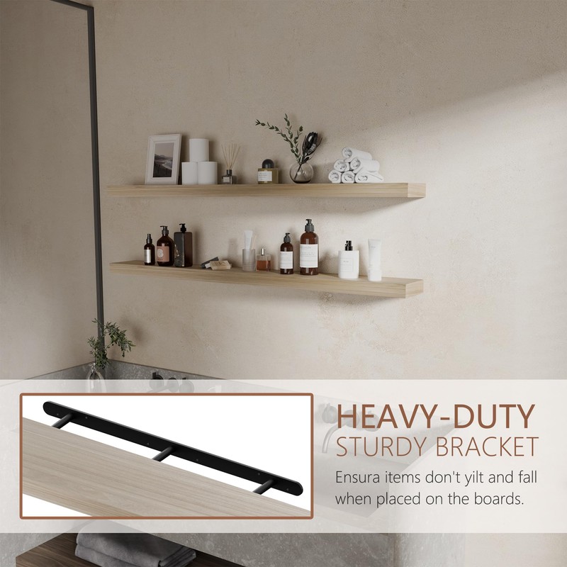 - 【Sturdy and Durable】Long floating shelf are constructed of 1.6 inch thick solid wood boards with strong iron stands,ensuring that the shelf have an excellent load bearing capacity and are able to safely store a variety of items without worrying about the durability of the shelves.