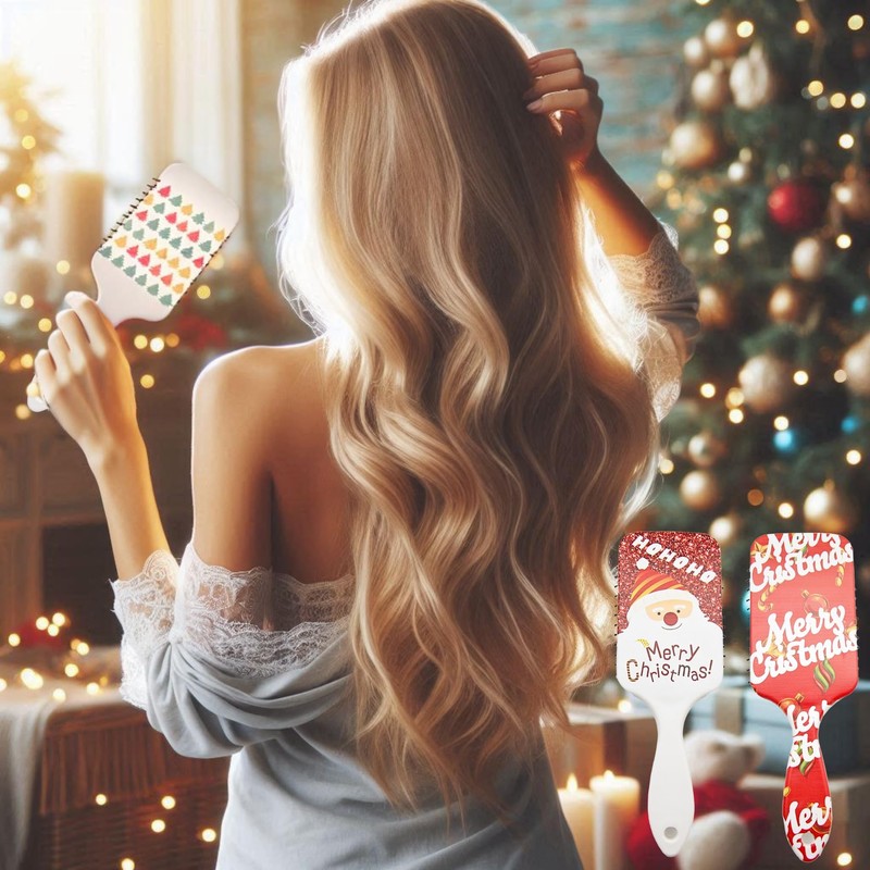 Onpalette Santa-Themed Christmas Hair Brush & Matching Hair Claw Clip Set - Pain-Free Detangling for Wet/Dry Use, Great Holiday Gift (Color F)