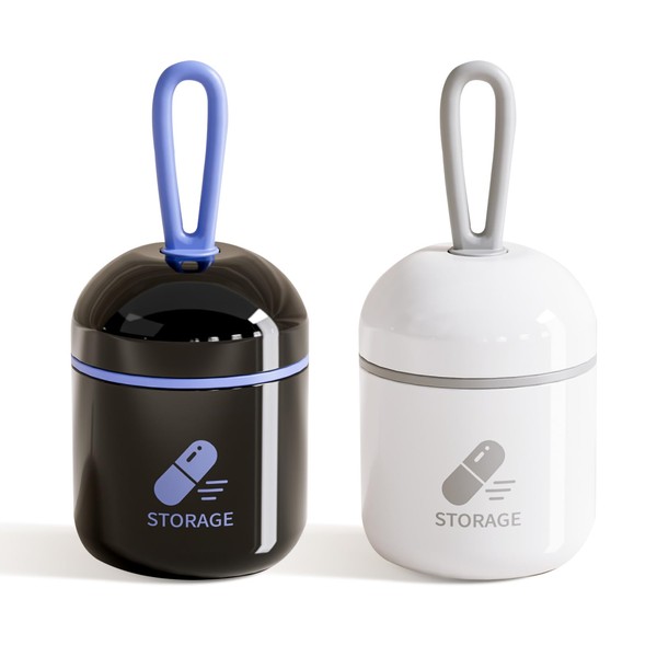 ONTERATE Keychain Pill Holder, Small Pill Box Case Container Organizer for Purse, Removable Divider, Silicone Seal Moisture Proof Mini Pill Bottle for Outdoor Camping Travel (2 Pack, Black Grey)