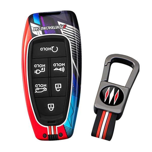 ontto 6-Button Car Key Shell Fit for Hyundai Solaris Sonata Hybrid Nexo NX4 New Grand Santa Fe Tucson 2020 2021 2022 2023 2024 2025,Sportracing Style Car Key Covers,Red