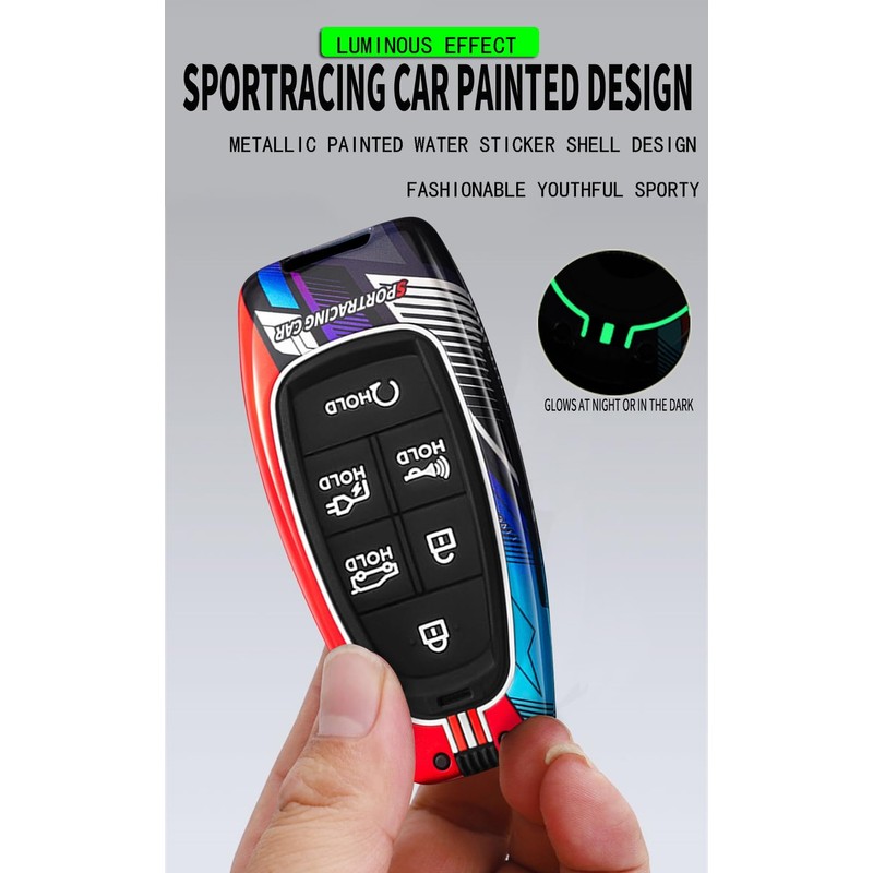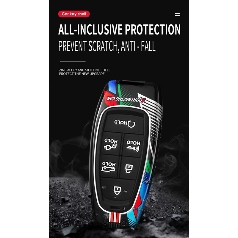 - Material : This key cover consists of a metal outer shell and a silicone inner shell. The metal shell has colored painted-on design and the inner shell completely encloses your keys. The solid outer shell and soft inner shell provide double protection for your keys.The button position does not affect the sensitivity when the button is pressed.The painted design on the outer shell of the key case is inspired by motorsport. It makes this key case unique and brings a different style to your keys