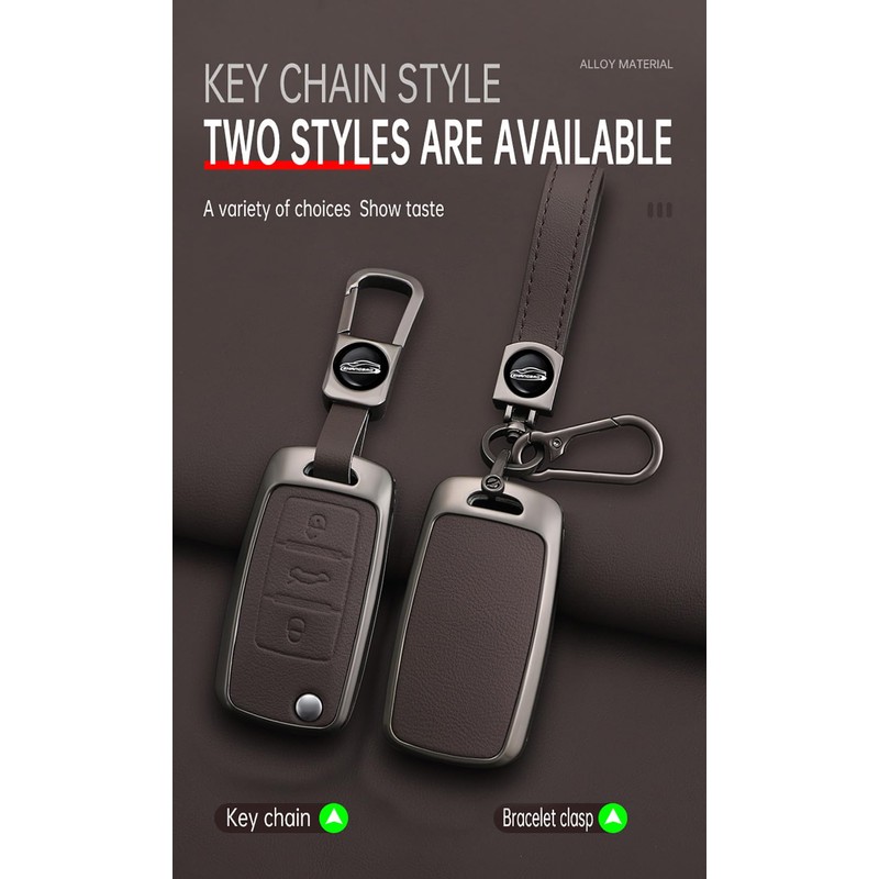 - ☀Material: The car key case and key chain are made of high-quality zinc alloy + leather, double-layer materials. 360° protects your car key from damage. Make your car key look beautiful and elegant.
