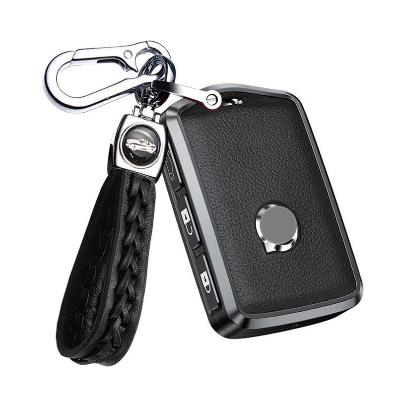- Material: the car key holder is made of high-quality aluminium alloy + selected first layer cowhide leather, double layer materials, 360° protects your car key from damage. Make your car keys look beautiful and stylish.