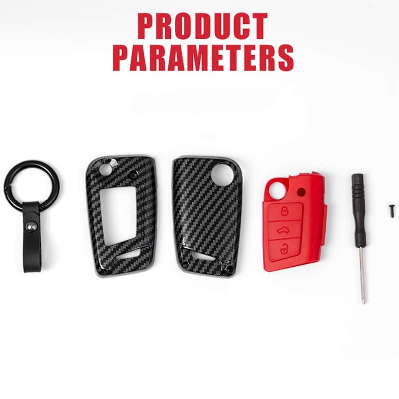 ontto Car Key Case Remote Control Cover for VW Golf 7 MK7 Polo T-ROC Tiguan Skoda Superb Octavia Seat Leon Ibiza ABS Key Cover Key Case Carbon Fibre Red B