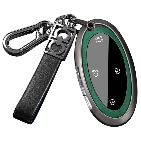 ontto Car Key Cover Fit for Hyundai Sonata 2025 2024 Metal Frame Key Protector Leather Key Fob Shell for Ioniq 6 Grandeur GN7 Kona Elantra Azera Santa fe Tucson Santa Cruz,with Keychain,Green