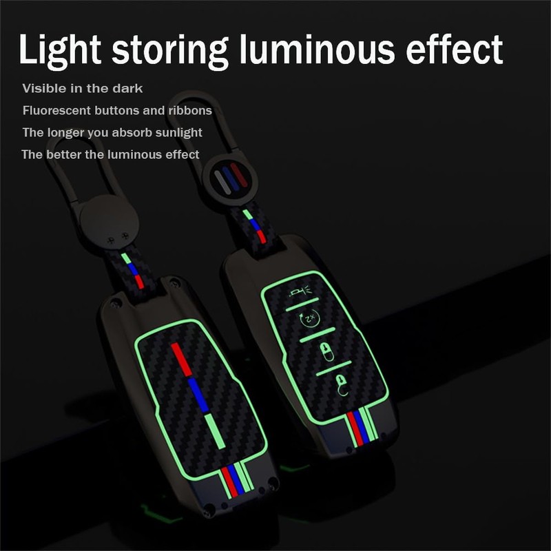 - Material Our car key case is made of high quality zinc alloy combined with soft silicone with carbon fiber texture, which provides both solid outer protection and comfortable hand feeling and non slip performance. The two-material design effectively resists scratches, bumps and wear and ensures that your keys are always as good as new.