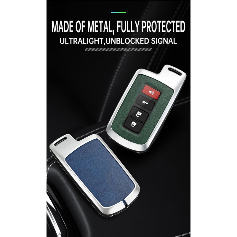 ontto Metal and Leather Key Fob Holder Fit for Tundra Tocoma Sequoia 4Runner Highlander RAV4 Camry Corolla Avalon Smart Car Key Case Anti-scratched Brown