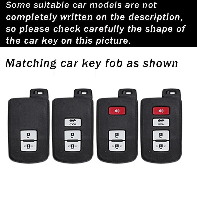 - {Fits Models} : This key cover compatible with Toyota Camry (2012-2017),Prius c (2012-2015),Avalon (2013-2018),Corolla (2014-2020),Tacoma (2015-2021),Land Cruiser (2016-2018),Highlander (2017-2019),Tundra (2019-2021),4Runner (2020-2021),Sequoia (2020-2021) etc.(for 2/3/4 buttons key fob) *NOTE*--Please refer to the matching keys shown on the picture.Because of the different years even if the same car model,the key fob may also be different
