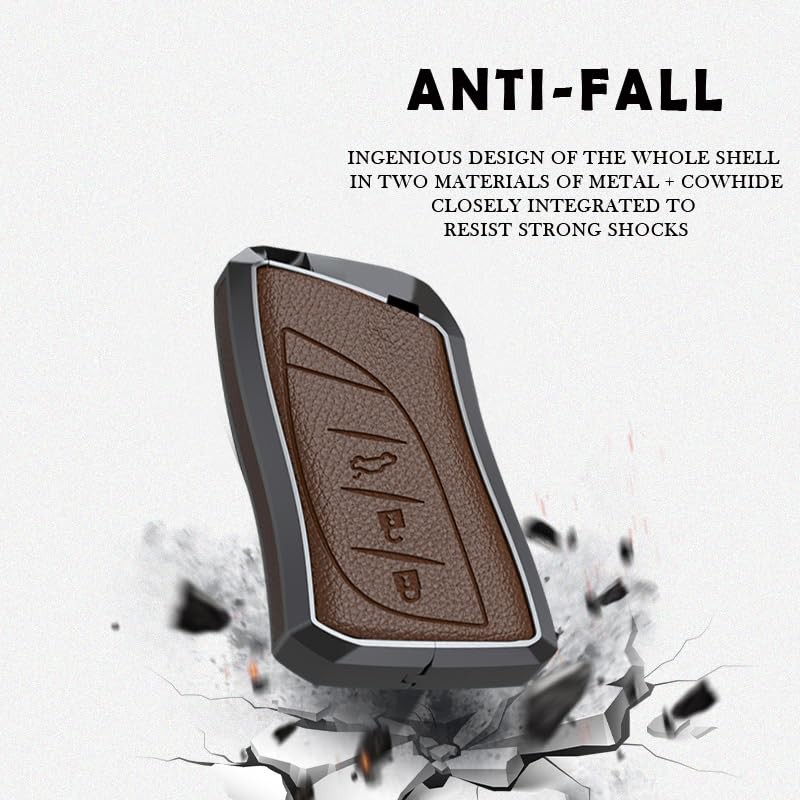 - 【PROTECTION】- Ingenious design of the whole shell in two materials of metal + cowhide Closely integrated to resist strong shocks. Wear-resistant Sturdy Aluminum alloy casing, anti-oxidation, anti-corrosion, anti-falling, which protects your auto keys from damage and scratches. Each piece of cowhide has been carefully selected by old craftsmen by hand to ensure consistent texture and good touch. Classy, stylish and long service life.