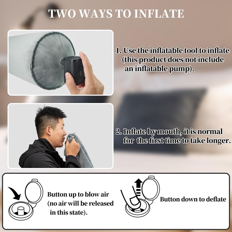 • ✔2 Ways to inflated: Our inflatable body pillows are inflated with an inflatable pump or a mouth. Because it requires a largelung capacity to complete inflation, if pregnant women, children and the elderly use it, please inflated by the inflatable pump or ask family for help. Notice:the infatable pumpe is not include in the package.