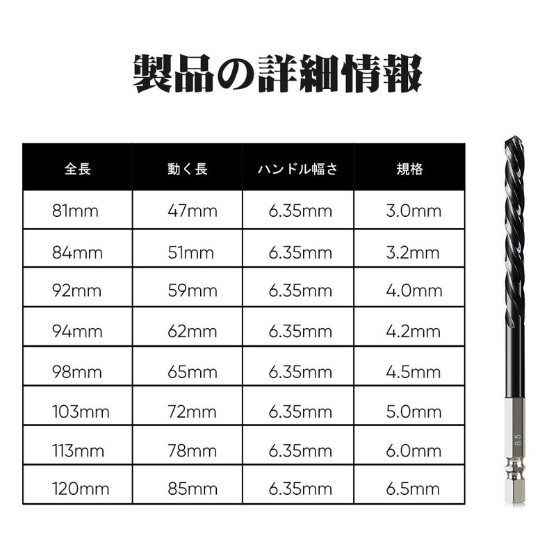 - [Range of application] The groove shape is ideal for stainless steel, so there is no welding and smooth drilling. Material for machining: stainless steel, hard work material, general steel, light metal (iron, aluminum, copper), wood, resin, etc. In addition, the shape of the shaft is hexagonal shaft, so it is compatible with impact drivers, electric drills, and charging drills