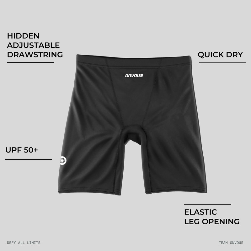 Onvous Swim Jammers for Men | Men's Athletic Swimwear Jammers | Mens Jammers for Swimming | Mens Swim Jammers Size 28-38, Black - Black Logo, 34