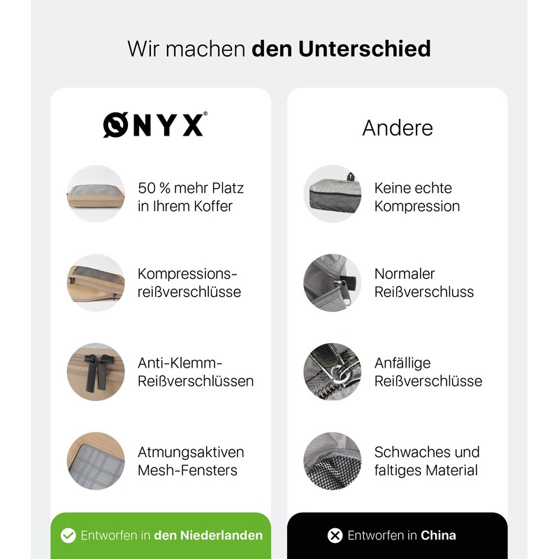 - Proven ONYX quality: our travel accessories impress as a suitcase organiser and travel set with stylish design, reliable workmanship and versatile use. ONYX offers you durable products that you can rely on on every adventure.