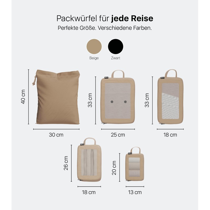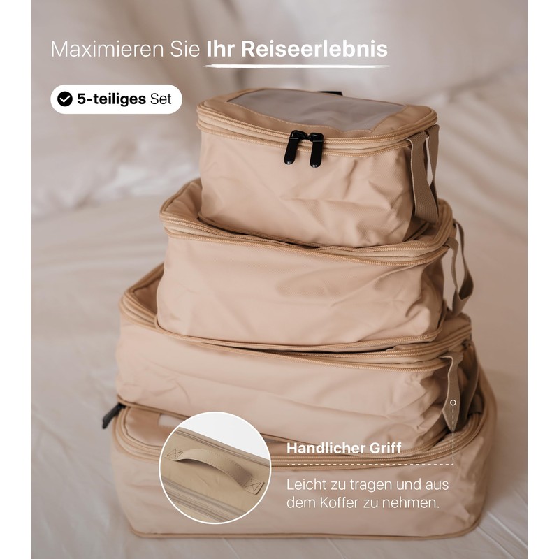 ONYX 5-Piece Packing Cubes Compression Set Including Shoe Bag or Laundry Bag - Packing Cube Compression for up to 50% Space Saving, Suitcase Organiser Set Made of 900D Polyester, Beige
