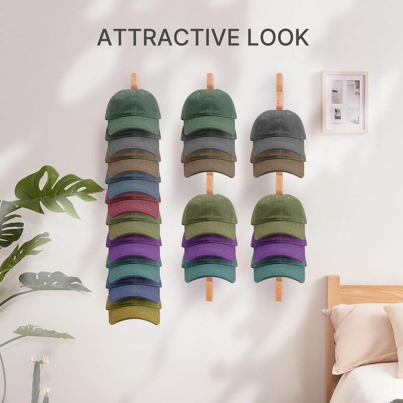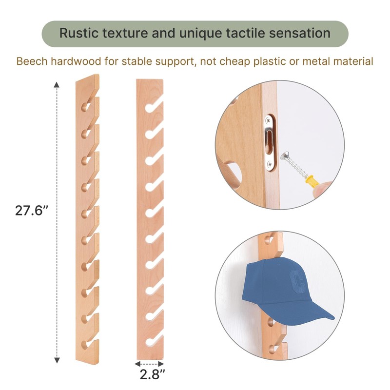 - Premium Hardwood Craftsmanship: Handcrafted from solid beech and fir wood with smooth, rounded edges to protect your hats from scratches. Each piece features precision-sanded contours and chamfered finishes for a luxe tactile experience. (Includes rust-resistant mounting hardware)