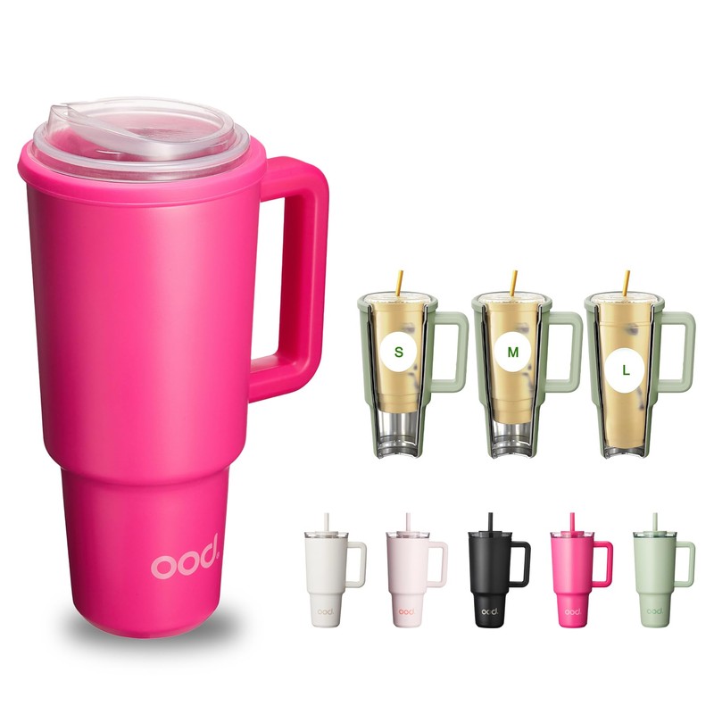 OOD OniVerso 40 oz Stainless Steel Insulated Tumbler with Handle and Straw, Coffee Holder Insulator for Cold Drinks, Cup Holder Friendly, Gifts for Women Men Him Her, Neon Rush (Pink)