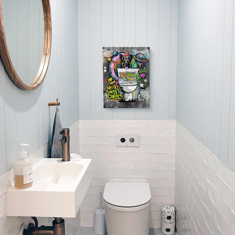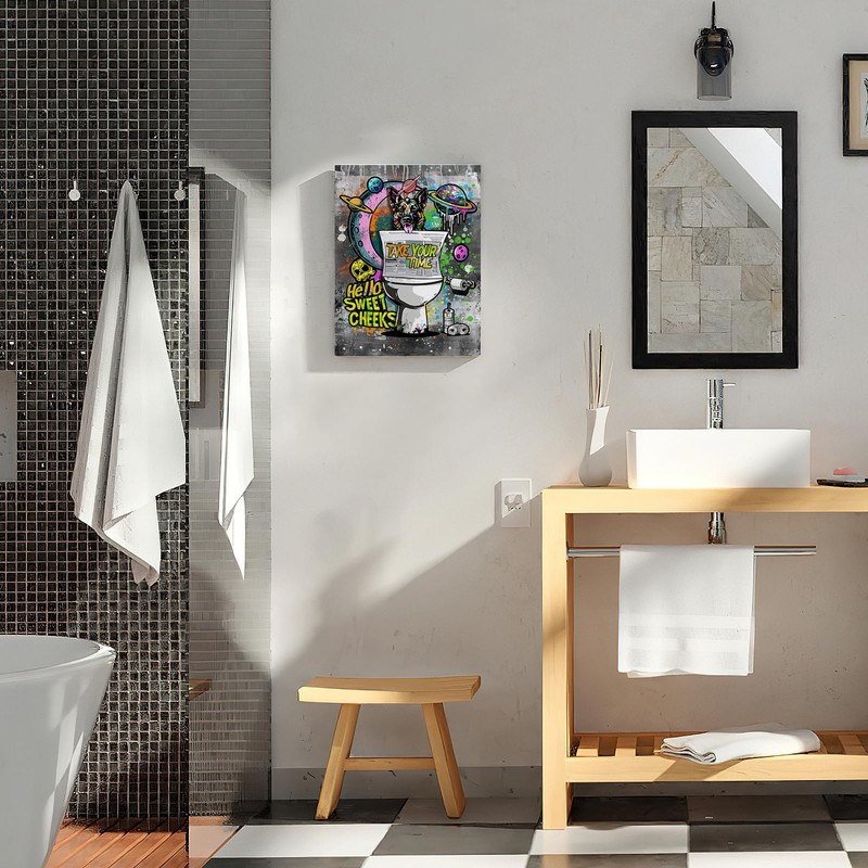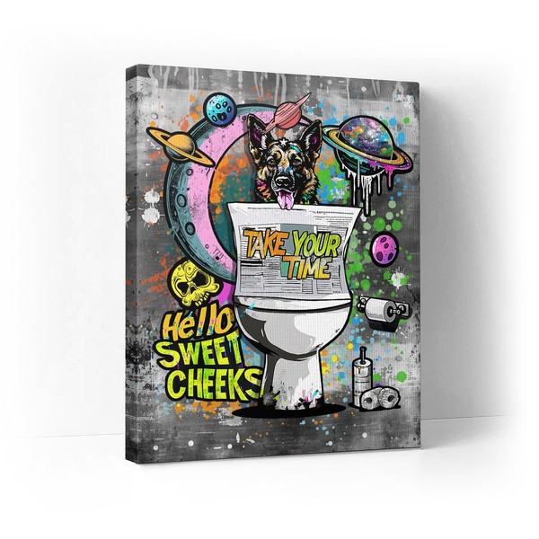Ooeiiiy German Shepherd Canvas Wall Art Graffiti Dog Wall Decor Funny Banksy Dog Picture Bathroom Prints Painting Framed Artwork For Bathroom Toilet Bedroom 12''X16''