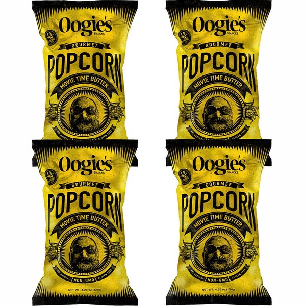 Oogie's Gourmet Popcorn | 4 Pack | Movie Time Butter Flavor | Gluten Free Popcorn Snacks | 4.25 Ounce Big Bag