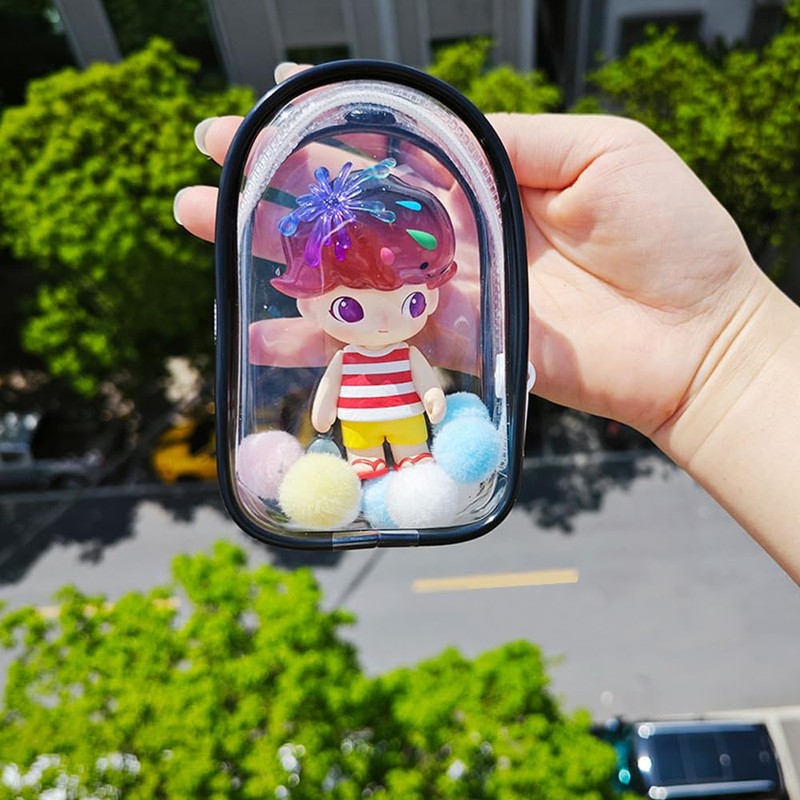 OONAISE Clear Doll Display Bag Keychain for Mystery Box Mini Figures, Portable Small Hanging Blind Box Organizer Zipper Closure,Dustproof Collectibles Display Case (Black)