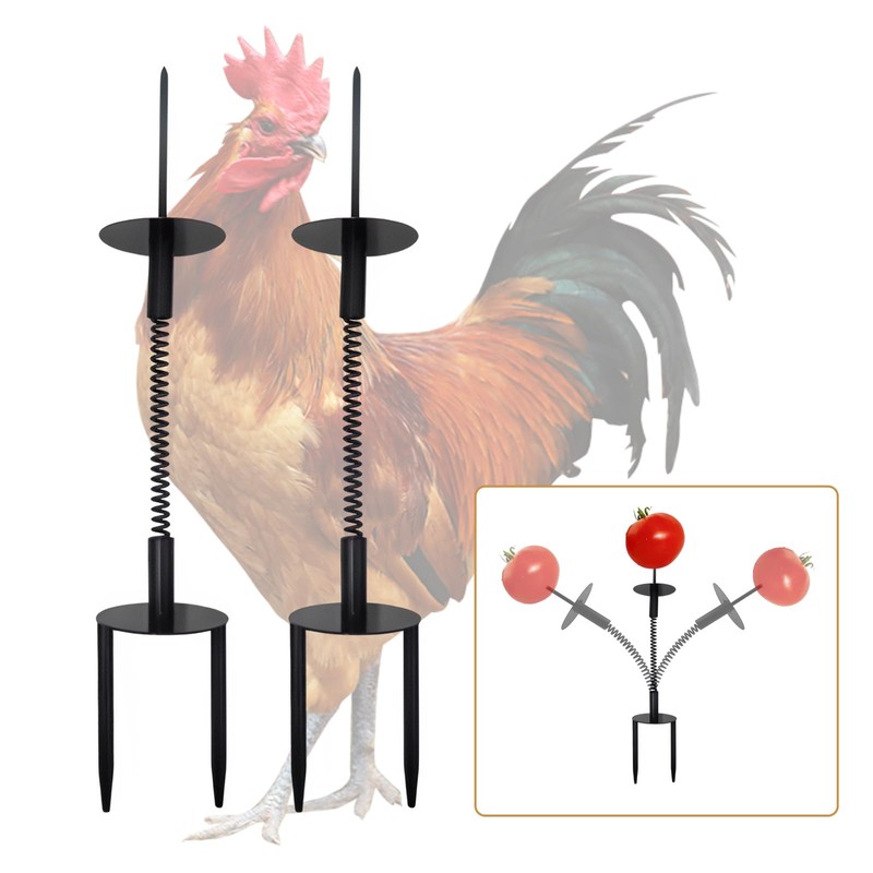 - 3-Part Design for Fun & Function: The feeder toy features a metal spike to hold food like apples, corn, or cabbage, a spring mechanism that allows the food to swing freely, and a sturdy ground plug to easily secure the toy in your garden, lawn, or coop.