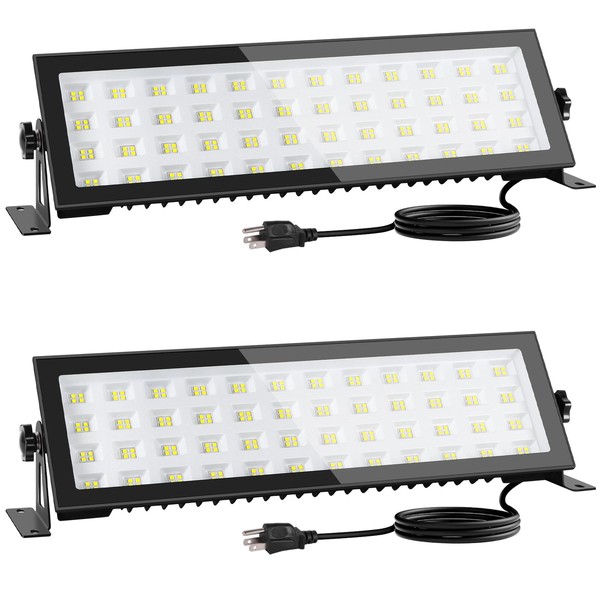 OOOLED 2 Pack LED Shop Lights, 100W 13000LM 6000K Super Bright LED Work Light, IP66 Waterproof LED Flood Light Outdoor with Plug, LED Shop Lights for Workshop, Garage, Shop