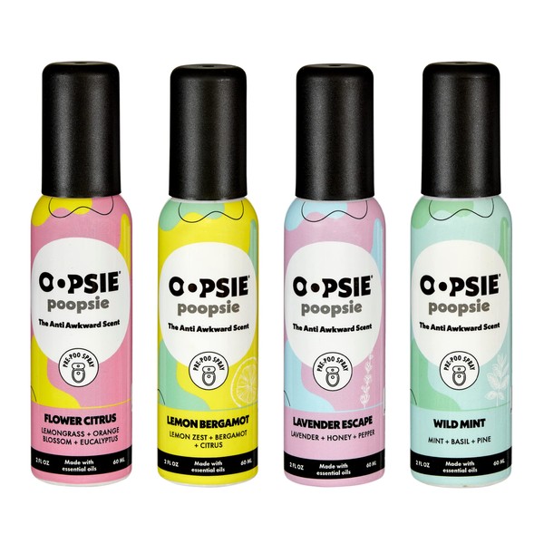 Oopsie Poopsie toilet spray, discreet & portable original odor deodorizer scents. Perfect day Gift. Pre-poo spray to use on the go 2oz bottle (Citrus Lavender Lemon Mint, 2 Ounce (Pack of 4)