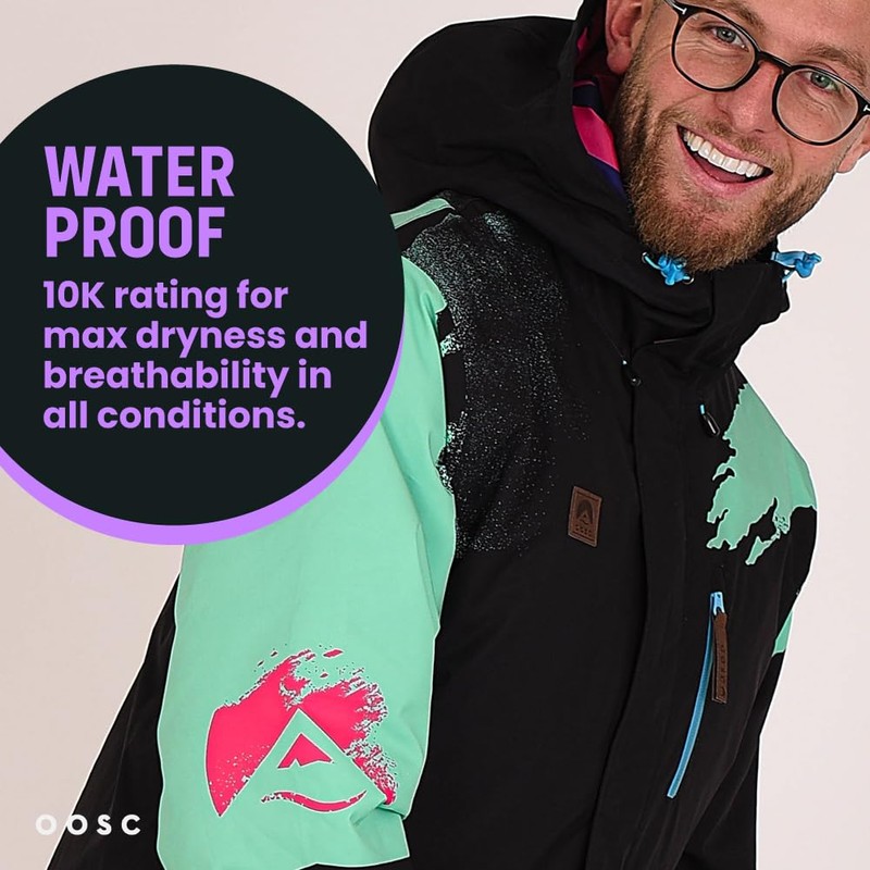 OOSC Afterparty Snowboard & Ski Jacket for Men, Size L | Black, Mint | 10K Waterproof, 80g Insulated Winter Jacket for Skiing & Snowboarding | Recycled Polyester