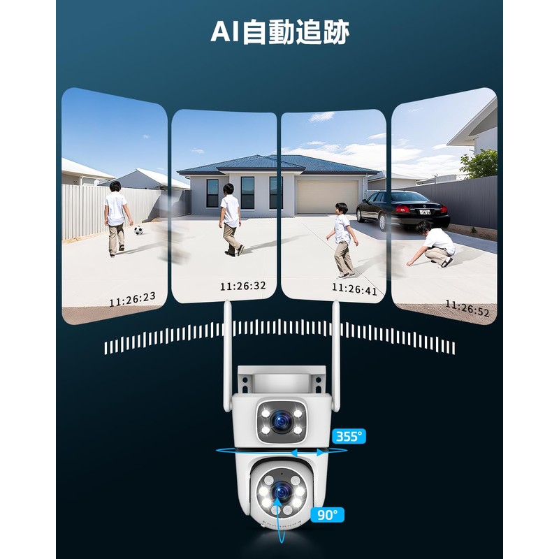 - {Auto Tracking} This camera automatically detects moving objects, and the lens rotates to follow the movement, allowing you to monitor a wide area unmanned efficiently. For example, you can capture your pet moving around the room or your child will play with it. Omnidirectional automatic tracking completely captures the vertical motion of your cat climbing the cat tower and your child jumping out of the couch