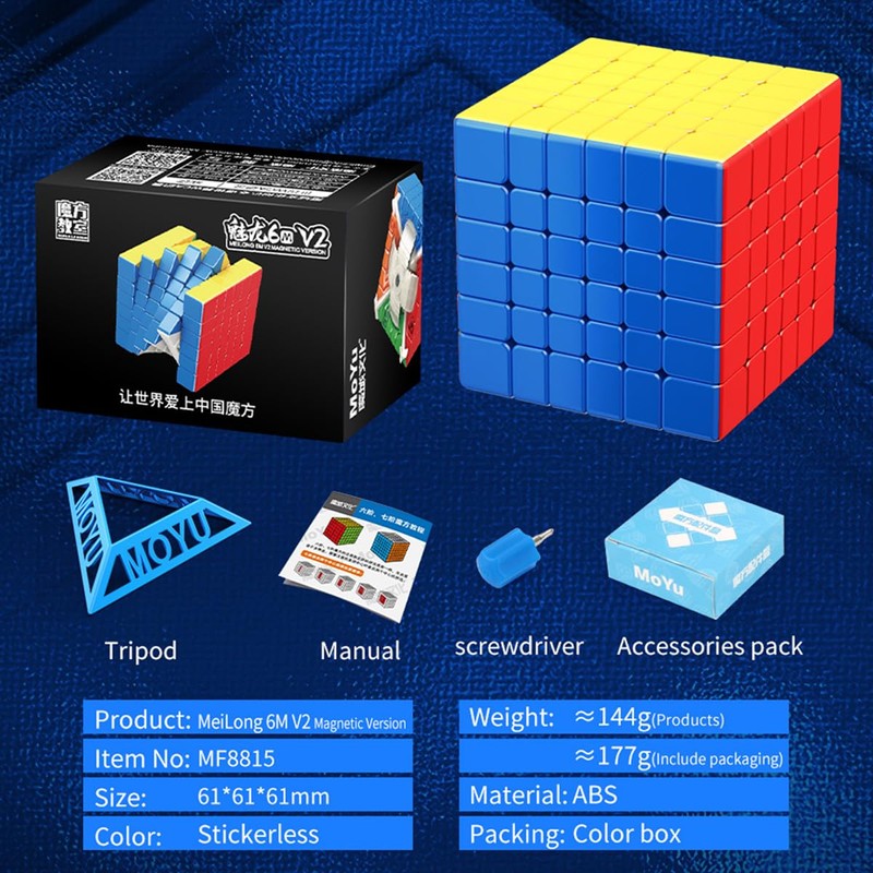 - ** M Version: M version means the cube with M-M-a-g-n-e-t-s Layout. M-positioning makes the cube more controllable and stable. This meilong 6M is the 6x6 cube with M-positioning.