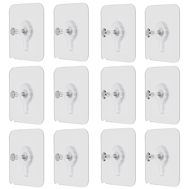 OOTSR 12-Set Adhesive Screws Stickers for Picture Frame, Wall Mount Hanging Nails Straight Hooks for Kitchen Shower Room Tile Wall, No-Trace Transparent Sticker, Detachable and Removable
