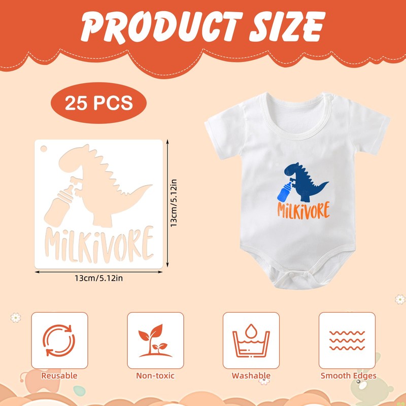 OOTSR 25 Baby Stencils, Drawing Stencils Template for Baby Shower, Stencil Stencils for Painting for Onesies, Bibs, Shirts Decoration