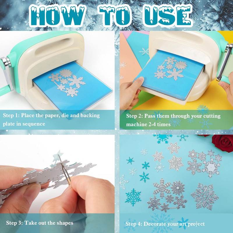 - Easy to Use These dies work with most brands of die cutting machines. Place the dies on colored paper or other materials, pass them through your die cutting machine and create snowflake shapes effortlessly.