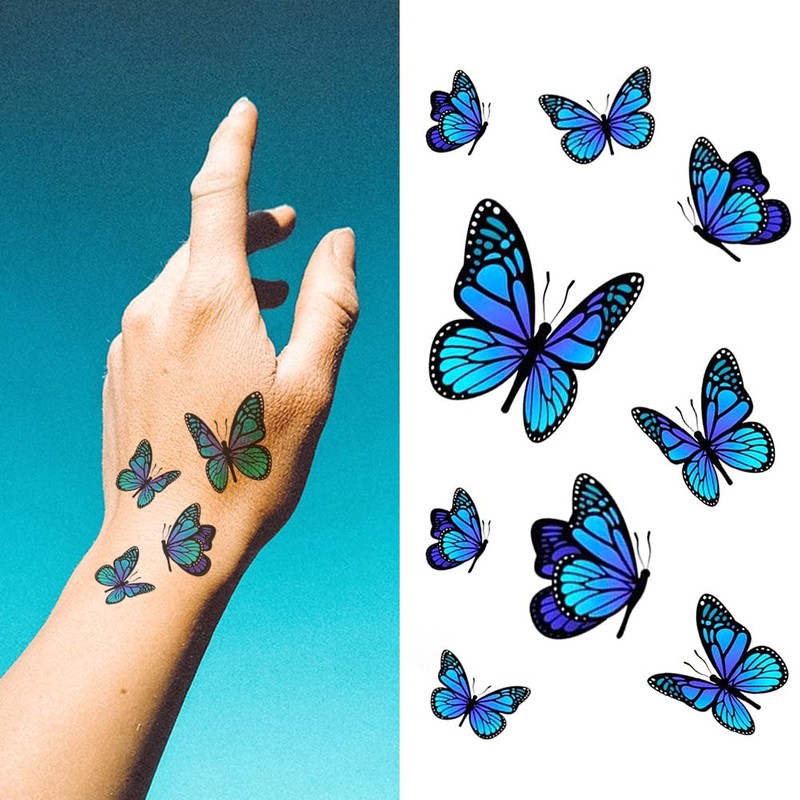 Oottati 2 Sheets Small Tiny Temporary Tattoo Stickers Blue Butterfly