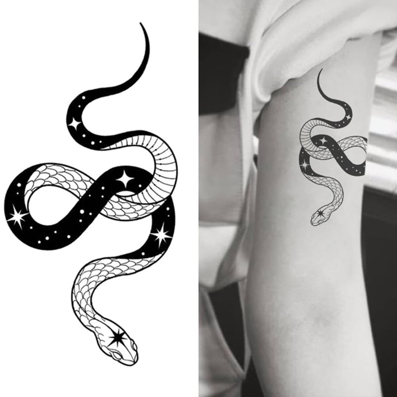 Oottati 2 Sheets Small Tiny Temporary Tattoo Stickers Hand Arm Black Star Snake