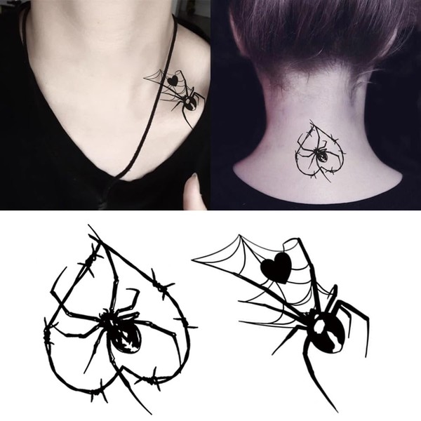 Oottati 2 Sheets Small Tiny Temporary Tattoo Stickers Throns Spider Net Heart