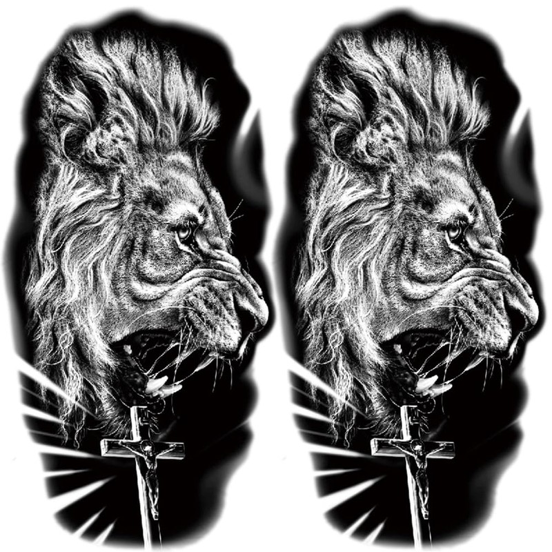 Oottati 2 Sheets Waterproof Fake Black Lion Cross Arm Leg Temporary Tattoo
