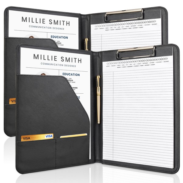 OOWOLF Padfolio with Clipboard Portfolio Binder for Resume, Legal Document, Business Office Conference, Legal Pad Portfolio Folder for A4 Letter Size Notepad, 8.5 x 11 2-Pack, with 1 Ruled Notebook