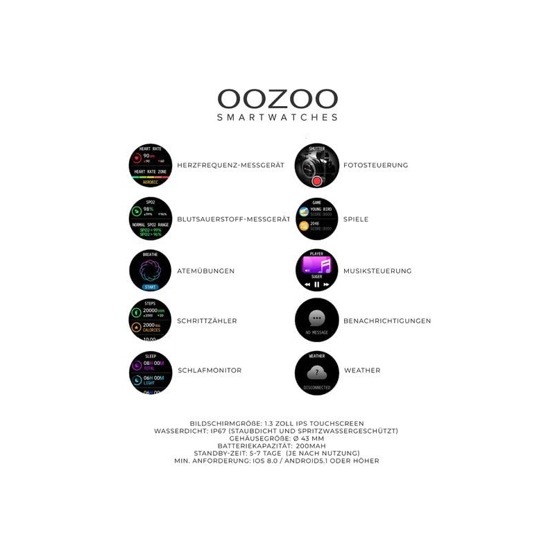 Oozoo - Vielseitige Smartwatch Herren mit 20mm Silikonarmband | Fitnesstracker mit Pulsmesser, Schrittzähler & Schlafmonitoring | Smartwatch rund IOS & Android kompatibel | 33mm Touchscreen | IP67