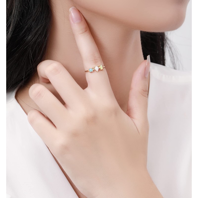 - Lab Created Opal Rings: Classic Simple Design,Can be the Dainty middle or pointer finger rings, midi knuckle rings, pinky rings.