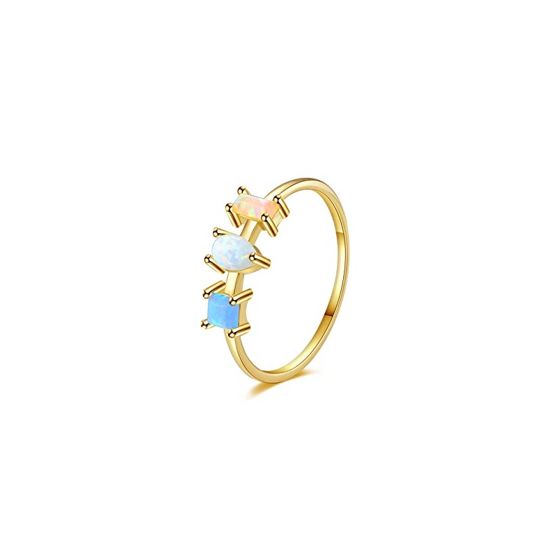 Opal Rings 925 Sterling Silver Cute 1MM Thin Gold lab Created Birthstone Stackable thumb Finger Statement Rings for Women Size N1/2